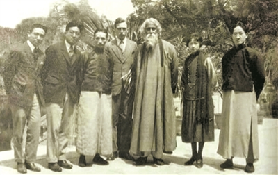 1924年4月12日,應(yīng)梁啟超、蔡元培的邀請(qǐng),泰戈?duì)柭暑I(lǐng)由梵文學(xué)者克提莫亨沈,國際大學(xué)藝術(shù)學(xué)院院長、畫家蘭達(dá)爾波斯,泰戈?duì)柕拿貢骱裰訝柛鞔鸫髮W(xué)歷史學(xué)家卡里達(dá)斯諾格教授和美國社會(huì)工作者葛玲女士等一行6人組成的訪華團(tuán),乘“熱田丸號(hào)”輪船抵達(dá)上海。徐志摩、張君勱等60多人在碼頭迎接。隨后泰戈?duì)栐L問杭州、南京、濟(jì)南、北京、太原、武漢等地,并發(fā)表演說。泰戈?duì)枱釔壑袊鴤鹘y(tǒng)文化,在訪華期間,他說:“朋友們,我不知道什么緣故,到中國便像回到故鄉(xiāng)一樣,我始終感覺,印度是中國極其親近的親屬,中國和印度是極老而又極親愛的兄弟。”
