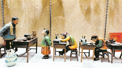 在展廳,記者看到了課本圖示“泥人張”作品“惜春作畫”的立體呈現(xiàn)。