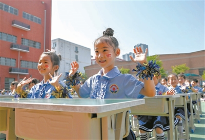 近日,河北省邯鄲市叢臺區曙光小學北校區學生在進行課桌操展演。為促進學生身心全面發展,豐富校園文化生活,該校組織開展了以“微笑、贊美、感謝”為主題的課桌操展演活動,通過形式多樣、精彩紛呈的課桌操展示學生的青春活力。周紹宗 攝