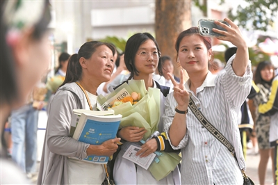 6月9日,在河北省石家莊市第一中學考點,考生和家長合影慶祝考試結束。