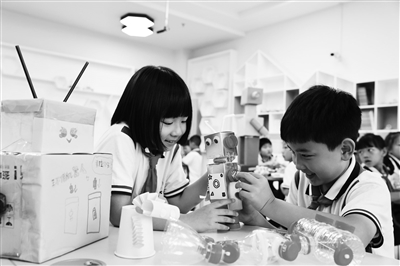 近日,浙江省湖州市德清縣乾元鎮中心小學學生利用廢舊物品精心創作機器人。該校開展“環保機器人 點燃科技夢”活動,學生們利用廢舊物品精心創作形態各異的機器人,增強節約、生態、環保意識,激發探索科技奧秘的興趣,提高動手能力和科學素養。