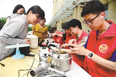 6月12日,江蘇大學電氣學院部分受過資助的大學生志愿者來到鎮江市潤州區官塘橋街道官塘橋村,利用他們所學專長回報社會,為村民義務修理各種家用電器,將惠民服務送到村民家門口。石玉成 攝