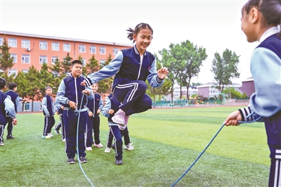 搖花繩、踢毽球、打腰鼓、跳啦啦操……在吉林省的中小學校園里,學生們利用陽光體育大課間以及體育課,在操場上、運動場上充分享受陽光和運動帶來的快樂。