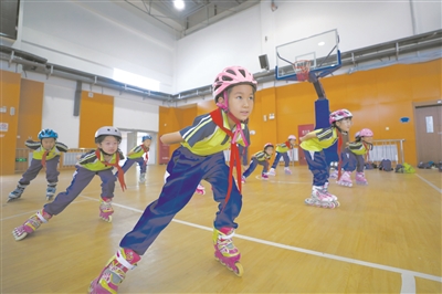 滑冰、滑雪是吉林省中小學的特色運動項目。這些冬季項目如何在夏季操場上繼續(xù)煥發(fā)活力?為冰雪替代項目開發(fā)場地、創(chuàng)造條件,長春新區(qū)吉大英才學校想了不少好辦法。學校在長春新區(qū)教育局的支持下,加大冰雪運動及替代設備器材配備,旱地“滑冰”、室內模擬滑雪吸引了不少喜歡冬季運動的孩子,也能更加充分利用現有場地設施,科學統籌使用操場、體育場館等,實現運動空間最大化。