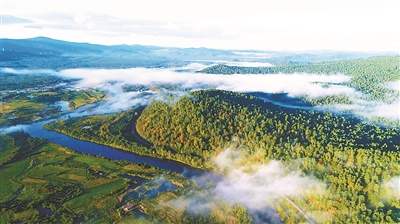 夏日時(shí)節(jié),隨著飛機(jī)的轟鳴聲,記者來(lái)到了位于小興安嶺腹地的祖國(guó)林都——黑龍江省伊春市。在千米的高空上俯瞰,一片蒼茫翠綠。在夏季的雨水云霧中,小興安嶺山連著山,松濤層層疊疊向遠(yuǎn)方推進(jìn),萬(wàn)頃林海就這樣闖入了視野。