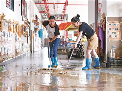 近日,貴州省銅仁市玉屏侗族自治縣第五幼兒園教師在清理校園里的淤泥。連日來,玉屏侗族自治縣遭受暴雨洪澇災害,部分小學、幼兒園被淹,當地教育部門積極組織抗洪搶險,確保學校正常上課。 胡攀學 攝