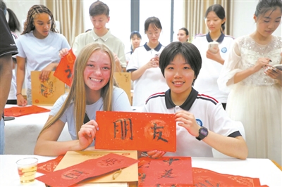 近日,由美國7個州14所中學近190名師生組成的美國青少年“青春同行”交流團訪華。在福州,美國學生與中國同齡人交流互動,歡聲笑語中,友誼的種子也在中美兩國青少年的心田里種下。寧麗萍 攝