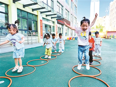 為切實減輕家長負擔,解決暑期“看護難”問題,近日,江蘇省鹽城市亭湖區所有公辦園都開設了愛心暑托班。各幼兒園依據幼兒年齡特點提供多元化課程和豐富多彩的活動,讓孩子們度過一個愉快又有意義的假期。圖為鹽城市解放路實驗學校第一附屬幼兒園暑托班孩子們的活動場景。 李偉 圖 倪同嶺 文