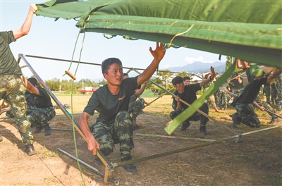 為更好突出武警部隊特色,本屆軍事訓(xùn)練營精心制訂了系列教學計劃,打造了“軍事常識”系列課程,用“總體國家安全觀”“軍兵種常識”“海洋權(quán)益”等立體化構(gòu)建學生理論基礎(chǔ);在《軍事教育大綱》基礎(chǔ)上,把擒敵術(shù)、警棍盾牌術(shù)、刺殺動作、戰(zhàn)術(shù)演練等融入軍事教學中,讓參訓(xùn)學生在堅定理想信念中練就過硬本領(lǐng),在摸爬滾打中感悟軍人的“初心”。