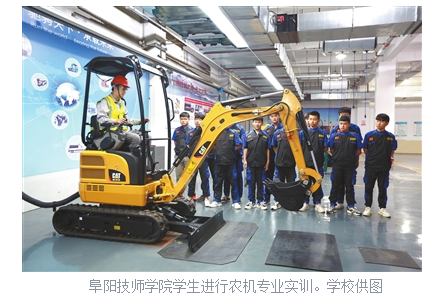阜陽技師學(xué)院與北京航天新風(fēng)校企合作打造一流智能制造專業(yè)群,專門組建生產(chǎn)班,每年選拔30名優(yōu)秀師生進(jìn)入企業(yè)生產(chǎn)一線鍛煉;北京航天新風(fēng)選派8名“大國工匠”榮譽(yù)稱號獲得者、全國勞動模范、全國技術(shù)能手駐校任教。位于阜南縣的阜陽理工學(xué)校與紐龍船舶合作建立船舶發(fā)動機(jī)關(guān)鍵中小零部件制造生產(chǎn)線,讓學(xué)生參與企業(yè)生產(chǎn),共同培養(yǎng)具備實操能力的技能型人才等,助力越來越多的職業(yè)技能人才加速成長。