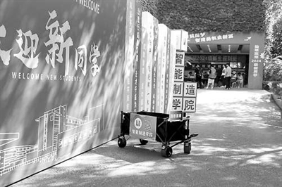 左圖:溫州職業(yè)技術(shù)學(xué)院學(xué)生自主研發(fā)的UWB自主跟隨行李運(yùn)輸車在迎新現(xiàn)場成為“頭號明星”。學(xué)校供圖