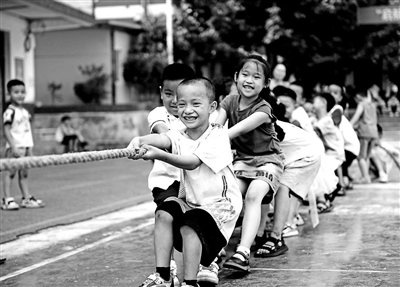 貴州省黔東南苗族侗族自治州從江縣城關第三小學學生參加課間游戲活動。通訊員 石宏輝 攝