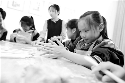 10月9日,湖北省竹山縣寶豐鎮紅衛小學陶藝工作坊里,孩子在教師的指導下制作陶藝。該校本學期成立陶藝社團,聘請竹山縣青少年活動中心有陶瓷藝術相關專業理論知識和實踐經驗的教師指導開設陶藝課程,讓學生在陶藝教育中感受美、理解美、鑒賞美、表現美。