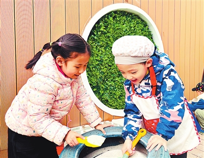 ④孩子們在戶外露營,給同伴“做飯”。 本版圖片均由首都師范大學附屬幼兒園提供