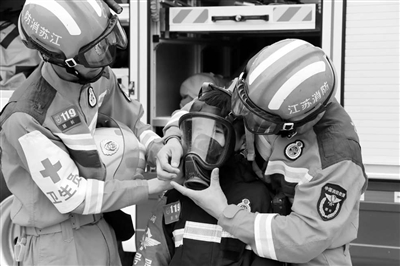 近日,在江蘇省淮安市洪澤第二實驗小學,消防員為學生穿戴消防救援裝備。洪澤第二實驗小學聯合當地消防救援大隊開展防災減災安全教育活動,指導學生學習應急知識、逃生演練、應急自救等,提高師生應急避險與安全自救能力。