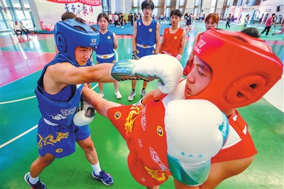 練習武術套路和散打的學生,很多也是出于個人愛好或抱著強身健體的愿望而來。在學校體育館里,該校武術散打隊隊員們正揮汗如雨、刻苦訓練。其中,身材瘦小、性格文靜的孫雨欣練得格外認真。“我是學校生命科學學院的一名學生,非常喜歡散打項目。練習散打,不僅能強身健體,還讓我學會了很多專業技能。”孫雨欣說。該校武術散打隊成立還不到一年,在第8屆中國大學生散打錦標賽上,隊員張邁、程夢真、黃德建、萬碩首次出征便取得一金二銀一銅的好成績,讓隊員們充滿了信心。這份信心還來自他們的教練“杰哥”。隊員們口中的“杰哥”名叫馮杰,是該校引進的國家健將級運動員,先后在多個國家級、世界級比賽中獲得散打冠軍。