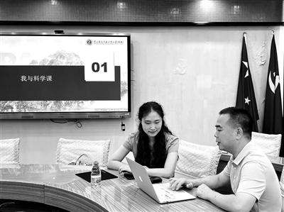 深圳市光明區教科院設計教研員和學校名師團隊協同培養的模式,圖為東周小學(集團)校長何維泉(右)在指導新入職的科學教師陳方結。 資料圖片