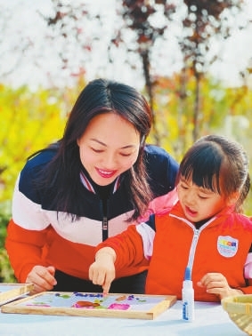 作為園長,她堅持每天進班與豆豆交流互動,和班級教師一起營造“我們是親親密密一家人”的班級氛圍,引導全班幼兒關愛、幫助豆豆。