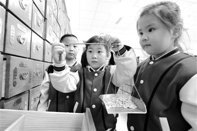 近日,江蘇省連云港市東??h西雙湖幼兒園開展了“認中藥、學中醫、傳國粹”活動,組織小朋友走進中醫院,感受中醫藥傳統文化的魅力。張玲 攝