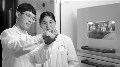 大連理工大學生物工程學院學生在做菌株觀察實驗。 大連理工大學供圖