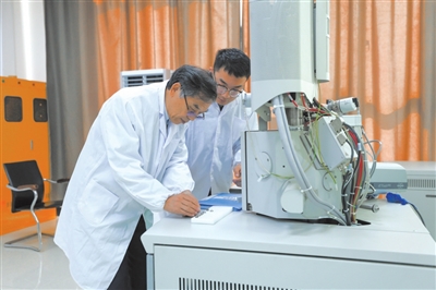 在河南理工大學“河南省非常規能源地質與開發國際聯合實驗室”,該校教授曹運興(左)手把手地指導學生制作掃描電鏡實驗樣品。