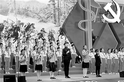 山東濰坊昌邑市第一實驗小學學生獻禮黨的生日,朗誦紅色經典詩文。資料圖片