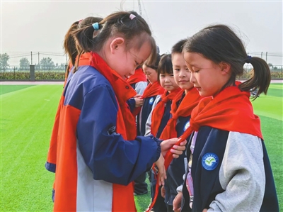 懷遠縣雁湖學校舉行少先隊新隊員入隊儀式。學校供圖