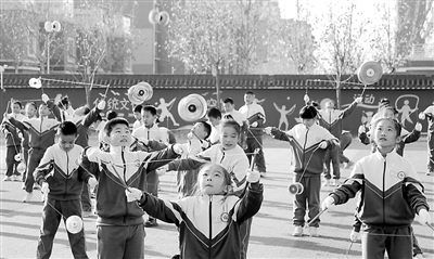 12月4日,山東省東營市東營區弘文小學學生在練習抖空竹。學校把抖空竹引入校園,讓師生在享受運動樂趣的同時強身健體、傳承非遺文化。