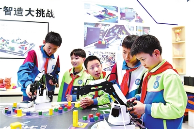 12月6日,在山東省日照市金海岸小學(xué),學(xué)生在進(jìn)行航天英雄挑戰(zhàn)賽訓(xùn)練。近年來,山東省日照市東港區(qū)積極推進(jìn)中小學(xué)人工智能教育,實(shí)行“普及+提高”的人工智能課程體系,以聯(lián)盟結(jié)對(duì)、成立共同體等形式,推動(dòng)優(yōu)秀課程資源共建共享,目前,已建成中小學(xué)人工智能實(shí)驗(yàn)室37所。