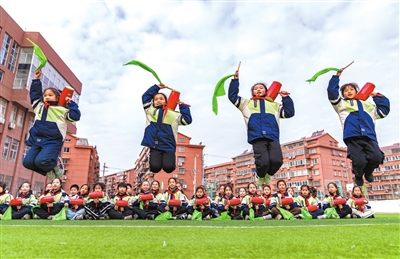 12月10日,江蘇省海安市教師發展中心附屬小學學生在學習非遺“海安花鼓”。近年來,該校將省級非遺項目“海安花鼓”作為體育教學和學校社團的專題項目,積極傳承并發揚。