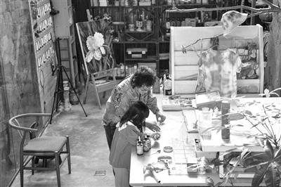 近日,在上圍村花鏡園工作室,藝術(shù)家劉靜靜指導(dǎo)小朋友進(jìn)行扎染創(chuàng)作。上圍村位于深圳市龍華區(qū),是一個有著400多年歷史的客家老村。2017年以來,當(dāng)?shù)卣M(jìn)藝術(shù)人才入駐上圍村,用藝術(shù)助力鄉(xiāng)村振興。如今的上圍村,藝術(shù)家工作室、博物館、展覽館星羅棋布,近百名文化藝術(shù)人才集聚于此,各種特色文化活動吸引近7萬人次參與。