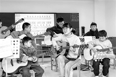 近日,在安徽省蕪湖市繁昌區(qū)青少年活動(dòng)中心,小朋友在老師的指導(dǎo)下學(xué)習(xí)彈吉他。近年來,繁昌區(qū)青少年活動(dòng)中心按照“普及普惠”原則,拓展和充實(shí)校園第二課堂活動(dòng)內(nèi)容,開設(shè)藝術(shù)類、體育類、科技類等豐富多彩的公益培訓(xùn),助力青少年全面發(fā)展、健康成長。