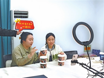揚州工業職業技術學院學生在創業園內直播推廣自創品牌產品。學校供圖