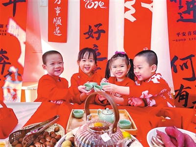 為傳承春節(jié)這一傳統(tǒng)節(jié)日的豐富內(nèi)涵,增強(qiáng)幼兒對(duì)傳統(tǒng)文化的認(rèn)知和體驗(yàn),吉林省長(zhǎng)春市南關(guān)區(qū)組織全區(qū)幼兒園開展“非遺培養(yǎng)了不起的中國(guó)娃”活動(dòng),倡導(dǎo)幼兒園開展“紅紅火火過(guò)大年”活動(dòng)。圖為幼兒在民俗活動(dòng)中感受濃濃的中國(guó)年氛圍。本報(bào)記者 李瑩 通訊員 王藝霏 攝