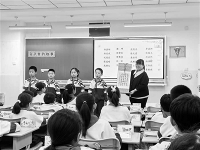 北京市東城區教育科學研究院小學語文教研員王超男在上觀摩課。學校供圖