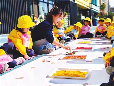 ①無錫市鈴蘭實驗幼兒園教師在教孩子做手工。王辰予 攝