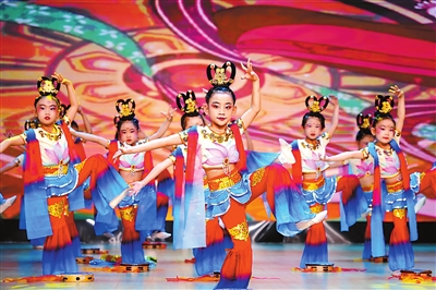 ①張掖市臨澤縣濱河幼兒園幼兒表演《盛世敦煌》。
