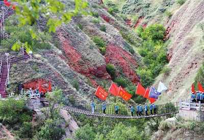 ②來自甘肅各地的學生在會寧參加“重走長征路 砥礪強國志”行走的思政課主題實踐活動。