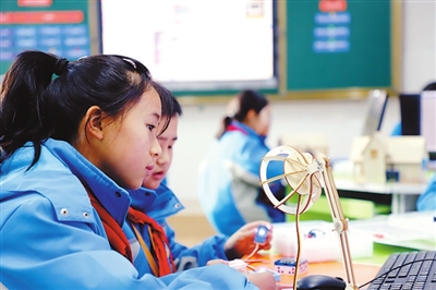 ③定西市岷縣和平九年制學校學生在接受創客教育。 尹曉軍 攝