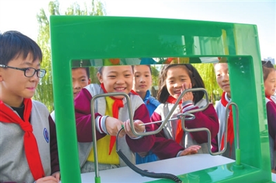 霍邱縣城關鎮中心小學學生在科技節上鍛煉手眼協調能力。黎志 攝