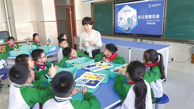 ②濰坊市奎文區明德學校學生在上人工智能教育課。