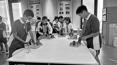 廣東省深圳市鹽田區(qū)外國(guó)語(yǔ)學(xué)校的學(xué)生在進(jìn)行趣味實(shí)驗(yàn)。學(xué)校供圖