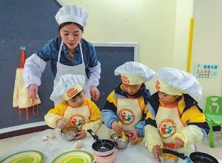 ②六盤水市水城區(qū)第二幼兒園小朋友們在學(xué)做美食。