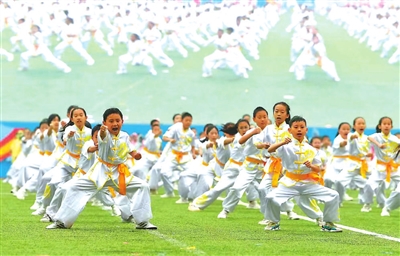 ②北京市中小學生武術健身操比賽上,參賽學生一展風采。 北京教育融媒體中心 供圖