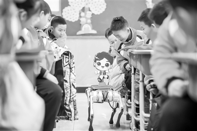 新疆昌吉市第一小學學生重返校園,在課余觀看仿生機器狗表演。 通訊員 楊斌 攝