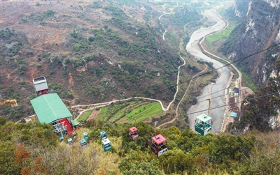 2022年,“山高谷深坡陡”的上學路迎來轉機。高達268米的電梯和近200米高差的高空索道纜車陸續投入使用,并對尼珠河村及附近的村民免費開放,孩子們上學有了直達山頂的“云端校車”。南方電網云南曲靖供電局還為電梯提供了雙電源供電,確保“云端校車”全年正常運行。