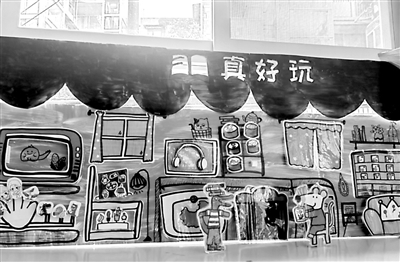 活動過程:我們把圖書區物品畫下來貼在墻上,這些色彩鮮艷的圖畫不僅美化了環境,還成了幼兒回顧操作材料的小幫手。他們常常站在墻邊,指著圖上物品奶聲奶氣地說出名稱:“耳機、書、地圖……”看著他們專注好奇的模樣,我們意識到這是培養前識字能力的契機。于是,我們進一步完善操作板,加入窗戶、燈、沙發等元素,讓幼兒了解標志和符號的意義。
