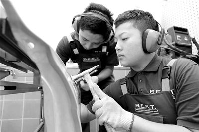 北京市昌平職業(yè)學校汽修專業(yè)寶馬BEST項目班學生進行實訓。