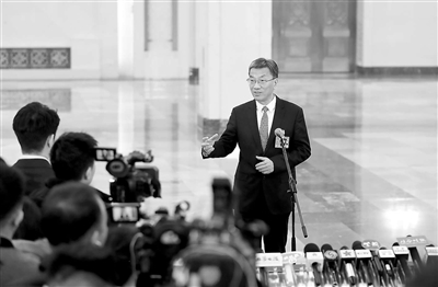 3月5日上午,教育部部長懷進鵬出席在人民大會堂舉行的十四屆全國人大三次會議首場“部長通道”集中采訪活動,接受媒體采訪。本報記者 張學軍 攝