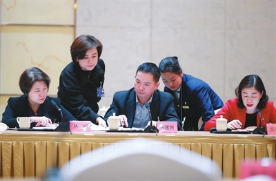 3月8日,馬建國(guó)(中)仔細(xì)推敲他在小組會(huì)上的發(fā)言。今年全國(guó)兩會(huì),全國(guó)人大代表、黑龍江省漠河市立人學(xué)校校長(zhǎng)馬建國(guó)提出優(yōu)化教師教齡津貼制度的建議。本報(bào)記者 張學(xué)軍 攝